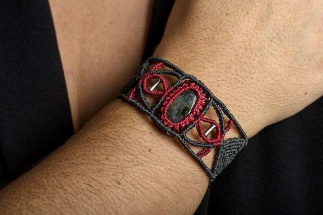 Bracelet en micro-macramé réalisé à la main, avec une préhnite rutile.