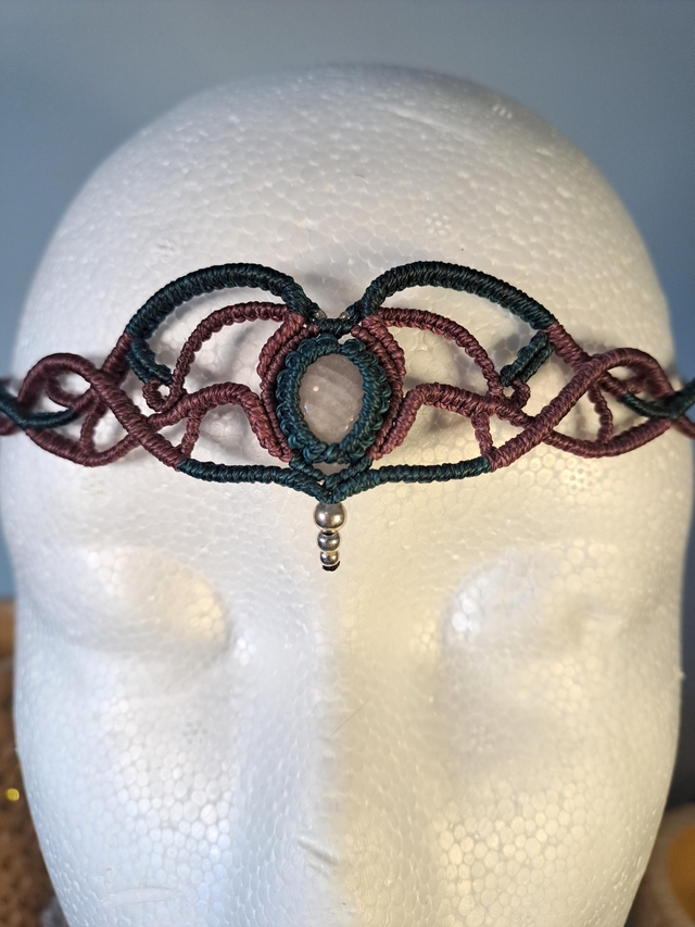 Bijou de tête en micro-macramé, réalisé à la main.